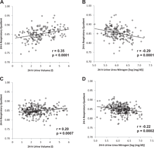 In a secondary analysis of collected data, we selected healthy adults (Group 1, n = 177) who had 24-h whole-room indirect calorimetry measurements in energy balance with 24-h urine collection and fasting copeptin measurements (n = 117), followed by 3 days ad libitum food intake. A separate group (Group 2, n = 284) with hydration markers and calorimetry measurements was also studied. The main outcome measures were 24-h RQ, 24-h EE, DEI, substrate oxidation.