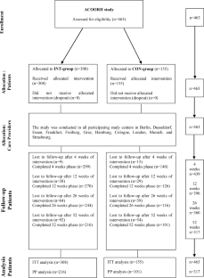 The ACOORH group thanks their consortium members for their excellent work (a complete list of all consortium members including those who did not met authorship criteria can be seen in the Supplementary information). Furthermore, the authors thank their study staff for their excellent work and Dr. Thomas Keller (ACOMED statistik®, Leipzig, Germany) for his support in the statistical analysis. We would also like to thank Verena Heinicke, Katrin Esefeld, Nina Schaller and Johannes Scherr for their significant support of performing the trial at the local Munich site. The study centre of Freiburg thanks their colleagues Sadaf Koohan and Andrea Stensitzky for their great support by conducting the study. We, the West-German Centre of Diabetes and Health, Düsseldorf, thank our study nurse Bettina Prete for her excellent work.