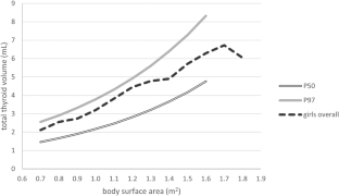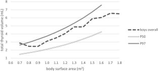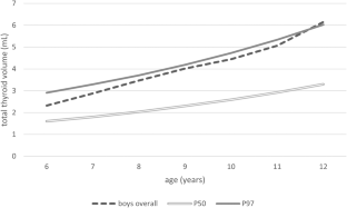 Zimmermann MB, Hess SY, Molinari L, De Benoist B, Delange F, Braverman LE, et al. New reference values for thyroid volume by ultrasound in iodine-sufficient schoolchildren: a World Health Organization/Nutrition for Health and Development Iodine Deficiency Study Group Report. Am J Clin Nutr. 2004;79:231–7. https://doi.org/10.1093/ajcn/79.2.231.