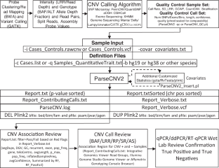 Glessner JT, Li J, Hakonarson H. ParseCNV integrative copy number variation association software with quality tracking. Nucleic Acids Res. 2013;41:e64.