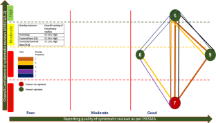 AMSTAR-2 was used to assess the quality of systematic reviews, PRISMA was used to check reporting-characteristics and citation-matrix was used to evaluate study-overlap. Quality of evidence was assessed by using Kohler’s-criteria.