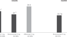 A treat-and-extend dosing regimen can help reduce treatment burden by extending injection intervals when possible and achieves visual outcomes superior to as-needed treatment regimens [16, 20]. Furthermore, the 1-year results from a large randomised clinical trial suggest that a treat-and-extend regimen is a viable and effective alternative to fixed monthly therapy in treatment-naive nAMD patients [21].