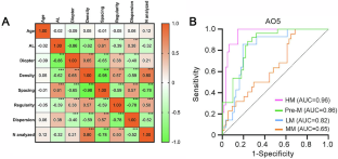 As spherical equivalent refraction (SER) decreased, cone density (r = 0.65) and regularity (r = 0.38) significantly declined, while spacing (r = –0.65) and dispersion (r = –0.40) increased (all P < 0.001). Axial length (AL) was negatively correlated with density (r = –0.62) and regularity (r = –0.39), and positively correlated with spacing (r = 0.61) and dispersion (r = 0.38) (all P < 0.001). Predictive efficacy analysis based on AO-derived parameters revealed the highest AUROC value in the HM group (0.96), followed by Pre-M (0.86), LM (0.82), and MM (0.65) groups, indicating that AO metrics demonstrated superior early identification capability for HM severity.