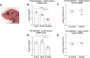 Martier R, Liefhebber JM, Miniarikova J, van der Zon T, Snapper J, Kolder I, et al. Artificial microRNAs targeting C9orf72 can reduce accumulation of intra-nuclear transcripts in ALS and FTD patients. Mol Ther Nucleic Acids. 2019;14:593–608.