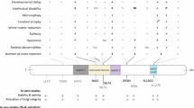 Neurological examinations were mostly unremarkable or limited to signs related to motor development delay while cerebellar ataxia was noted in two individuals and hypotonia in another two individuals. Of note, one patient displayed an action tremor and another presented with clumsiness and a balance disorder, raising the possibility of a mild underlying cerebellar ataxia in these two additional individuals. One patient presented with left laryngeal paralysis and limited left eye abduction. Six individuals were followed for epilepsy, while a seventh individual was treated with valproic acid but could not specify whether it was for neurologic or psychiatric reasons. Many seizure types were observed including tonic–clonic seizures (4/6), atonic seizures (2/6), myoclonic seizures (2/6), focal motor seizures (1/6), and typical absence seizures (1/6). Three patients were suspected to have LGS (one with generalized drug-resistant epilepsy with slow spike and wave on electroencephalogram (EEG), and two others who had generalized tonic–clonic seizures along with myoclonic and atonic seizures but without drug resistance and for whom access to EEG was not possible, and one had childhood absence epilepsy. Brain MRIs were available for ten individuals and revealed abnormalities in eight of them including white matter T2-weighted signal hyperintensity compatible with hypomyelination (3/8), type 1 Arnold–Chiari malformation (1/8), low-set cerebellar tonsils (1/8), thin corpus callosum (1/8), and meningocele with periventricular heterotopia and disrupted superior cerebellar vermis (1/8) (Fig. 3).