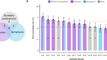 Aphids and their associated endoparasitoid wasps provide a unique system to study host–parasite coevolution as, in many cases, the outcome of their interaction is also influenced by facultative bacterial endosymbionts of aphids (Oliver et al. 2003). The vertically transmitted Hamiltonella defensa (Enterobacteriaceae) is among the most widespread of these symbionts (Oliver et al. 2003; Moran et al. 2005)—being found in 41% out of 131 examined aphid species (Henry et al. 2015). It confers significant protection against parasitoid wasps in multiple aphid species (reviewed in Oliver et al. 2014; Vorburger 2014). The protection is associated with the presence of the APSE bacteriophage in H. defensa’s genome (Oliver et al. 2009). Indeed, APSE carry strain-specific “cassettes” encoding toxins likely interfering with parasitoid development (Oliver et al. 2009). However, resistance against parasitoids is not only attributable to the symbiont–bacteriophage association aphids carry, as different symbiont-free aphid genotypes also differ in their resistance (Sandrock et al. 2010; Martinez et al. 2014). The variation in aphid susceptibility to parasitism, along with H. defensa strain-specific strength of protection, may explain natural variation observed in aphid–wasp interactions (Oliver et al. 2005; McLean and Godfray 2015; Oliver and Higashi 2019). Moreover, there is also ample genetic variation in wasp infectivity (Schmid et al. 2012; Vorburger and Rouchet 2016).
