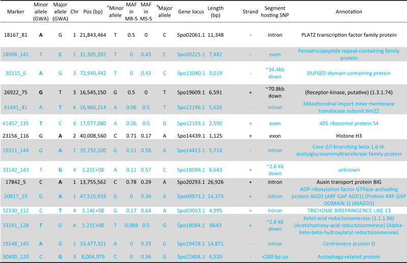 Table 4 Functional annotation and allele frequency of SNP markers associated with white rust resistance identified by the allelic mapping approach at the upper and lower 5% of the phenotypic distribution.