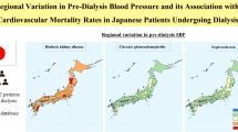 The Dialysis Outcomes and Practice Patterns Study (DOPPS) is based on a prospective cohort. We enrolled the entire Japan DOPPS phase 3 (J-DOPPS 3; 2005–2008; n = 2321) and 4 (J-DOPPS 4; 2009–2012; n = 2254) populations. The characteristics of the populations and data collection methods have been described previously [12, 13]. Within the DOPPS cohort, patients treated in Japan were considered the target population. The exclusion criteria were as follows: missing critical demographic or laboratory data such as age, dialysis vintage, sex, primary cause of end-stage renal disease, and BP. Written informed consent for inclusion in the DOPPS was obtained from all subjects. The DOPPS protocol is compliant with the Declaration of Helsinki.