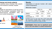 The baseline characteristics of subjects in the < 3rd-floor group and ≥3rd-floor group are summarized in Supplementary Table 3. There were significant differences between the two groups in age, diastolic blood pressure, total cholesterol, TG, LDL-C, exercise time and prevalence of CVD, use of lipid-lowering drugs, and use of antidiabetic drugs. The FMD value was significantly smaller in the < 3rd-floor group than in the ≥3rd-floor group (2.4 ± 2.7% vs. 3.3 ± 2.5%, p = 0.001) (Supplementary Fig. 3A). The NID value was significantly smaller in the <3rd floor group than in the ≥3rd floor group (9.4 ± 5.2% vs. 11.3 ± 5.1%, p < 0.001) (Supplementary Fig. 3B).
