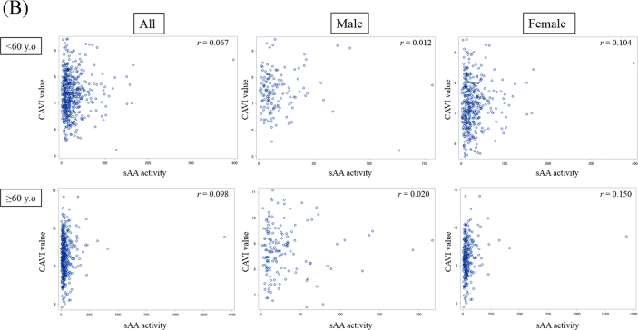 Appendix 2 Scatter plot of sAA activity and CAVI value for sex and age subgroups