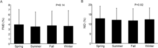Widlansky ME, Vita JA, Keyes MJ, Larson MG, Hamburg NM, Levy D, et al. Relation of season and temperature to endothelium-dependent flow-mediated vasodilation in subjects without clinical evidence of cardiovascular disease (from the Framingham Heart Study). Am J Cardiol. 2007;100:518–23.