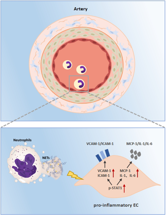 Graphical abstract of NETs regulation of the development of vascular inflammation in lower limb ischemia via pSTAT1/STAT1 signaling pathway.