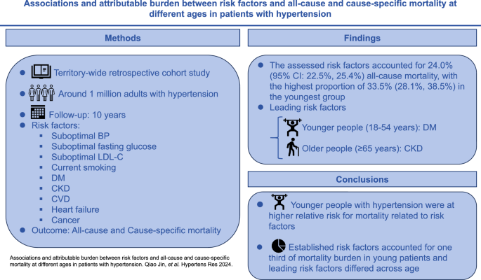 Jin, Q., Mei, J., Wong, Y.C. et al. Associations and attributable burden between risk factors and all-cause and cause-specific mortality at different ages in patients with hypertension. Hypertens Res 47, 2053–2063 (2024). https://doi.org/10.1038/s41440-024-01717-4