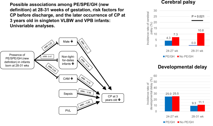 Ohkuchi, A., Suzuki, H., Kanai, A. et al. Early-onset preeclampsia/gestational hypertension may be associated with a low incidence of cerebral palsy at 3 years old in singleton very low-birth-weight infants born at 28–31 weeks of gestation (EOPE-DQ study): a multi-center retrospective cohort study in 2013–2016. Hypertens Res 48, 88–101 (2025). https://doi.org/10.1038/s41440-024-01929-8
