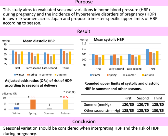 Jwa, S.C., Takano, N., Tamaru, S. et al. Seasonal variation in home blood pressure during pregnancy and frequency of hypertensive disorders of pregnancy: a multicenter prospective study of home blood pressure measurements in pregnant women using information technology. Hypertens Res 48, 110–120 (2025). https://doi.org/10.1038/s41440-024-01952-9