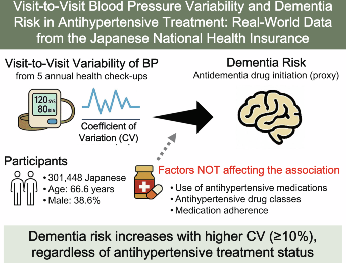 Satoh, M., Nobayashi, H., Nakayama, S. et al. Visit-to-visit blood pressure variability and dementia risk after considering antihypertensive treatment: real-world data from the Japanese National Health Insurance. Hypertens Res 49, 372–383 (2026). https://doi.org/10.1038/s41440-025-02451-1