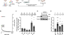 Short guide RNAs (sgRNAs) were designed using the CRISPRtool (http://crispr.mit.edu) to minimize potential off-target effects. sgRNA sequences and genomic primers are listed in Supplementary Table 1. Corresponding oligonucleotides were ordered (IDT) and subcloned into the LentiCRISPR plasmid (Addgene), expressing a human codon-optimized SpCas9, guide RNA, and puromycin expression plasmid, following a previously published protocol34. Specific sgRNA lentiviruses were packaged as described in the Methods section. One milliliter lentiviral supernatant was added into 1 × 106 293T cells or 1 × 105 MEFs in six-well plates. After 48 h, 2 or 4 µM puromycin was used for selection. Puromycin-selected 293T or MEF cells (Fig. 4c and Supplementary Fig. 3b–e) or MEFs (Supplementary Fig. 2c, d) were expanded for western blot assay.