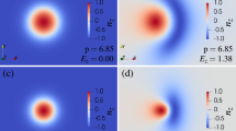 The topological soliton dynamics that we report in this article is not restricted to the particular nematic host material system of MLC-6609, for which we present most of the data, but can be achieved with a broad variety of LC materials with both positive and negative dielectric anisotropy. For example, similar experimental and numerical results are also obtained (to be reported elsewhere) using a chiral nematic LC based on a nematic mixture of ZLI-2806 (see material parameters in Table 1) doped with either a left-handed chiral additive ZLI-811, the same as that used in our current study, or a right-handed additive CB-15 (all materials purchased from Merck). Furthermore, translational motion of baby skyrmions shown in Fig. 2g–i and Supplementary Fig. 1 can be driven electrically even when obtained in materials with positive dielectric anisotropy, such as pentylcyanobiphenyl (5CB, purchased from Frinton Laboratories, Inc.), which we will describe elsewhere. In a material with positive dielectric anisotropy, such as 5CB, the field that is applied perpendicular to substrates squeezes the localized skyrmion structure (such as the one shown in the Supplementary Fig. 1c) asymmetrically. When voltage is modulated (Supplementary Fig. 1c), this too results in motion because of the field-driven asymmetric squirming response of the localized structure.