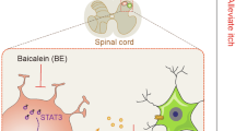 Murine DRG were isolated and cultured using a previous described protocol58. In brief, laminectomies were performed on mice and bilateral DRG were dissected out. After removal of connective tissues, DRG were digested with 1 mL Ca2+/Mg2+-free Hank’s Balanced Salt Solution (HBSS) containing 1 μL saturated NaHCO3, 0.35 mg L-cysteine, and 20 U papain (Worthington Biochemical, Lakewood, NJ, USA) for 10 min in 37 °C water bath. After centrifugation, the supernatants were further treated with 1 mL Ca2+/Mg2+-free HBSS containing 3.75 mg collagenase type II (Worthington Biochemical, Lakewood, NJ, USA) and 7.5 mg dispase (Worthington Biochemical) for 15 min. Neurons were gently triturated, pelleted, and then resuspended in Neurobasal-A culture medium containing 2% B-27 supplement (ThermoFisher Scientific, Waltham, MA, USA), 100 U/mL penicillin plus 100 μg/mL streptomycin (Sigma-Aldrich, St. Louis, MO, USA), 100 ng/mL nerve growth factor (NGF, Sigma), 20 µg/mL glial cell-derived neurotrophic factor (GDNF, Sigma-Aldrich) and 10% heat-inactivated FBS (Sigma-Aldrich). After plating, DRG neurons were kept in a humidified incubator at 37 °C for at least 24 h.