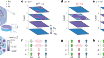 Here the static field \(\left| {\mathbf{B}(\mathbf{x},T)} \right| \propto \phi (T) \cdot M_{{\mathrm{dot}}}{\mathrm{/}}\left| \mathbf{x} \right|^3\) determines the precession dynamics with antiferromagnetic order parameter ϕ(T), disc moment Mdot, and distance \(\mathbf{x}\) between muon and XY moment. \({\theta}={\angle}({\mathbf{S}}_{\mu} (0), {\mathbf{B}})\) denotes the angle between field direction \(\mathbf{B}\) and initial muon-spin direction \({\mathbf{S}}_{\mu} (0)\), and γμ/(2π) = 135.54 MHz T−1 is the muon gyromagnetic ratio. In the experiment, the muon is implanted at random positions. Therefore P(t, T) was averaged over the lateral spread of the muon beam and the implantation depth of the muons in the stopping layer. The latter is weighted by depth probabilities obtained from TRIM.SP depth profiles of muons implanted in an 80 nm gold layer on a silicon substrate48. P(t, T) can be fitted by a two-exponential decay, yielding two relaxation rates λ1(T) and λ2(T). Both λ1(T) and λ2(T) follow the square-root temperature dependence of the mean-field order parameter, and the magnitude of the slower relaxation rate compares well with the measured values of λslow(T) (see solid line Fig. 3b, d, f). Further details on the calculations are documented in the Supplementary Note 1.