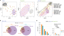 Primary cells were cultured as previously done in Pei et al.66. Primary human AML cells, normal cord/peripheral blood mononuclear cells (CBMCs/PBMCs) were resuspended at about 100–200 e6 cells per ml in freezing media composed of 50% FBS (GE Healthcare), 10% DMSO (Sigma) and 40% IMDM media (Gibco) and then cryo-preserved in liquid nitrogen. Cells were thawed in 37 °C water bath, washed twice in thawing media composed of IMDM (Gibco), 2.5% FBS (GE Healthcare) and 10 ug/ml DNAse (Sigma). Normal CD34+ CBMCs/PBMCs were enriched from CBMCs/PBMCs using the CD34 MicroBead kit (Miltenyi Biotec). Cells were cultured in normal or complete serum-free media (SFM) in 37 °C, 5% CO2 incubator. Normal SFM is composed of IMDM (Gibco), 20% BIT 9500 (STEMCELL Technologies), 10ug/ml LDL (Low Density Lipoprotein, Millipore), 55uM 2-Mercaptoethanol (Gibco) and 1% Pen/Strep (Gibco). Complete SFM were made by supplementing the normal SFM with FLT-3, IL-3 and SCF cytokines (PeproTech), each at 10 ng/ml. MDS-L cells were a generous gift from Daniel Starczynowski and grown in RPMI-1640 medium with 10% FBS, 1% penicillin-streptomycin and supplemented with 10 ng/ml IL-367.