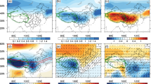 To confirm the conclusions from the composites and to further reveal the mechanism of interest, numerical experiments are performed. The numerical model used here is the Advanced Weather Research and Forecasting Model (WRF-ARW, version 3.9.1), which was developed by the National Center for Atmospheric Research (NCAR). The WRF-ARW has been applied to climate research, including studies of land–air interactions. The model domain is centered at 35°N and 115°E, covering an area of 9250 km (west–east) × 6350 km (south–north) with a horizontal resolution of 50 km. There are 28 levels in the vertical direction. The land surface parameterization scheme used in this study is the Noah-MP land surface model47. Noah-MP contains a multi-layer snow pack with liquid water storage and melt/refreeze capability and a snow-interception model describing loading/unloading, melt/refreeze, and the sublimation of the canopy-intercepted snow. Important physics options include the WRF single-moment 6-class microphysics scheme48, the NCAR Community Atmosphere Model (CAM 3.0) spectral-band shortwave and longwave radiation schemes49, the Yonsei University planetary boundary layer scheme50, and the Kain–Fritsch convective parameterization scheme51. The WRF is driven by atmospheric and surface forcing data extracted from the National Centers for Environmental Prediction (NCEP) FNL Operational Model Global Tropospheric Analyses.