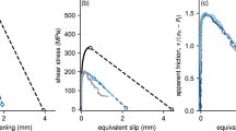 Comparison of the wear material from experiments at different slip rates showed that the nanopowder was indistinguishable in grain size, structure, composition and water content. The lack of discernible difference between the wear material formed in different experiments requires that the differences in shear resistance between the moderate slip rate (100 µm/s–1 cm/s) and fast slip rate (>1 cm/s) experiments (Fig. 1) must be explained by velocity-dependent properties, not just the presence of the wear material. The post-shearing strengthening5,6,9 is dependent on the evolution of material properties during the static hold periods, potentially by time-dependent bonding5,6. We explain the rheological observations with two deformation mechanisms that cause weakening and re-strengthening on two different timescales: particulate flow assisted by hydrodynamic lubrication; and intraparticle plasticity (Fig. 7). The action of these two weakening mechanisms together is akin to superplasticity sometimes described in crystalline materials which involves intraparticle deformation, as well as grain-boundary sliding between particles (c.f.28).