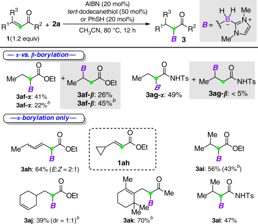 From: Regioselective radical α-borylation of α,β-unsaturated carbonyl compounds for direct synthesis of α-borylcarbonyl molecules