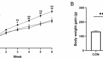 Liver-specific sympathectomy was performed in SD rats by a bolus injection into the portal vein of 6-hydroxydopamine (25 mg/kg; 6-OHDA), a neurotoxin specifically targeting sympathetic nerve fibers, or vehicle (0.1% ascorbic acid in saline; sham controls). Note that the appropriate dose of 6-OHDA was determined in a separate dose-finding study, where the injected doses ranged from 10 to 50 mg/kg body weight. For the intraportal 6-OHDA injection, a midline incision along the linea alba was made. The colon was gently arranged onto a sterile cotton gauze soaked in saline until the mesenteric vessels were clearly visible. The mesenteric vein was cannulated with a portex fine tubing (ID 0.58 × OD 0.96 mm) and the tip of the tubing was advanced to the liver hilus into the portal vein. 6-OHDA was then slowly injected over 2 min and the tubing was removed sealing the puncture site with tissue glue. The colon was returned to the abdominal cavity, and the muscle and skin incisions were closed with sutures. Immediately after the sympathectomy the rats were implanted with a brain infusion kit and osmotic minipumps to initiate the ICV chronic infusion studies as described above. Due to a significant first pass effect, the liver was the primary target organ of the pharmacological sympathectomy, while other tissues were not significantly affected (Supplementary Figures 4a and b), which was validated by measuring tissue norepinephrine levels by ELISA (LDN, Nordhorn, Germany).
