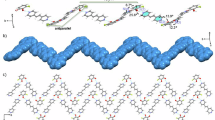 CD signal of L,L-IA in CH3CN at 25 °C was found to vary with its concentration sigmoidally, giving an extremely low critical aggregation concentration of 0.08 μM (Supplementary Fig. 17). A high equilibrium constant Ke of 1.25 × 107 M−1 at 25 °C was calculated, according to the assumption that the critical aggregation concentration is close to Ke−146. The estimated Ke, higher than those of the helical columnar stacks of classical C3-symmetrical benzene-1,3,5-tricarboxamides of 105 M−1 level, is ascribed to the high cooperativity of the crossed double halogen bonds47. Meanwhile, the CD signal almost did not drop when the CH3CN solution was heated from 20 to 75 °C, implying a high thermal stability of the supramolecular structures of L,L-IA in solution (Supplementary Figs. 18–20), higher than that of the single-stranded supramolecular helix formed from L,L-AI in CH3CN solution whose CD signal started to drop at 35 °C (Supplementary Fig. 21)22. Concentration dependent DLS data of the solutions showed little change in the size of the polymeric species upon varying concentration from 0.5 to 5 μM (Supplementary Fig. 22). This observation suggested that the supramolecular polymeric forms of L,L-IA in CH3CN exist already at very low concentration and the increase in the solution concentration over 0.5 to 5 μM mainly results in the increase in the number but not the length of the supramolecular species. After standing for 7 days at room temperature, the solution of L,L-IA in CH3CN shows little change in the DLS data (Supplementary Fig. 23). Decrease in the size of the polymeric species was observed when the solution was heated from 25 to 75 °C (Supplementary Fig. 24), yet the fact that large supramolecular species (ca. 100 nm) exists at 75 °C again indicated that the superstructure remains stable at high temperature. These results demonstrated that the intermolecular interactions are cooperative thereby tightly hold L,L-IA molecules into the supramolecular helical structures in CH3CN, even at extremely low concentration, standing for several days and at high temperature.