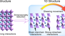 The mechanism of bending can be visualized better by analyzing the structure of the two forms in the bent crystal that can roughly be approximated by a bimorph (Fig. 5a, b). In form II, the carboxylic acid dimers form infinite tapes along the crystallographic direction [001]. The tapes are further stacked perpendicular to the (010) face and interact with each other through π–π interactions along the crystallographic a axis. As is schematically shown in Fig. 5b, crystals of form II TA are plastically bent perpendicular to their face (010) or (0\(\overline 1\)0). This causes sliding and rotation of the molecular tapes in form II to nearly 30° on the concave side, where they reform the sheets along the crystallographic c axis, and the concave part of the crystal is transformed to form I. The mismatch of the two unit cells, which—similar to their coexistence as alternating layers in a straight partially converted crystal—remain attached at the phase boundary, stabilizes the bimorph and the bent shape of the crystal is retained (Fig. 4d). When the bent crystal is heated over the phase transition, the form I on the concave side is transformed back to form II, and the unit cells in the two portions of the crystal become identical. This appears as partial or complete straightening of the crystal, and explains the shape-memory effect (Fig. 5c). The small remaining curvature can be attributed to residual permanent plastic deformation caused by defects introduced during the application of force to the crystal.