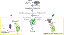 Some nanobodies are functional within mammalian cells and can thus be used to detect or manipulate target proteins in living cells8,27. Indeed, when co-expressing ALFA-tagged target proteins and NbALFA fused to mScarlet-I28 in mammalian cells, NbALFA-mScarlet-I robustly co-localized with ALFA-tagged target proteins with minimal off-target signals, resulting in crisp detection of ALFA-tagged structures (Fig. 1g, Supplementary Fig. 3). This demonstrates the ability of NbALFA to bind ALFA-tagged proteins in living cells. This feature is very attractive to be used in combination with genome editing tools like CRISPR-Cas29 and allows manipulation of ALFA-tagged proteins in vivo at their endogenous levels.