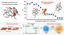 4-DBpFO is constituted of five flat segments: a fluorenone center with two phenyl rings at each side linked by single bonds (Fig.Ā 1). The small rigid planes can rotate around the single bonds with a large degree of freedom (dihedrals Īø and Ļ) when the molecules are heated in solution, similar to the molecular motors designed by Feringaās lab17,18. We have earlier reported that this compound crystallizes in a non-centrosymmetric crystal structure at room temperature with a Cmc21 space group (referred to as the αā²-phase), useful for optical second harmonic generation16. Here, we show another room temperature phase of 4-DBpFO described by a centrosymmetric Pnma space group (referred to as the α-phase), crystallized from a mixed solvent of chloroform and heptane (see TableĀ 1 for cell parameters). The morphology of the as-grown crystals is a parallelogram-like thin platelet (Fig.Ā 1a) with {010} basal planes and {101} or {10-1} side faces (Fig.Ā 1b). The crystal structure shows an antiparallel molecular organization along the crystallographic b-axis (Fig.Ā 1c), resulting in a layered structure parallel to the (010) plane (Fig.Ā 1b, c). The corner angles of the parallelogram are 91° and 89°, in accordance with those calculated from the cell parameters at room temperature.