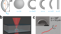 In contrast, for tori where a \(\sim\)40 nm platinum layer was deposited, we observed the formation of a thin platinum film with three distinct grain boundaries (Fig. 4g–i). The platinum thin film completely covered the binding nickel layer; leaving nothing to be oxidized at atmospheres or in solution. Hence, tori with a uniform platinum film covering the nickel swam preferentially polymer side forward, as observed experimentally and previously reported in other Janus swimmers19,41.