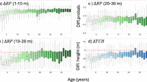 We find that the uncertainty of profile-derived biomass, BA, stem volume, and gross primary productivity decrease with increasing MCH (Fig. 4, Supplementary Fig. 2). This observation can be related to the variation of tree densities and gap dynamics in natural forests. Forest gaps show a high density of trees34 so that the amount of possibilities to form a particular lidar profile is larger than for a few large trees. In addition, larger trees mainly occur in later successional state, which can only be reached by a few species. Consequently, forests of low canopy height reveal a higher structural- and species-induced ambiguity than forests that are only dominated by a few large trees.