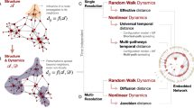 For the sake of clarity, we first introduced a simple but illustrative example based on a model that describes the spreading of knowledge on a social network18,25,29 and verifies in its simplest version \({\bf{M}}={\bf{G}}\), i.e., the transition and the adjacency matrices coincide. However, our results can be applied to any dynamical process described as \({\bf{n}}(t)={{\bf{M}}}^{t}{\bf{n}}(0)\), being \({\bf{n}}(t)\) the state vector of a certain variable at time \(t\) at each node of the network. As a guiding example, we have studied the economic networks of the 36 OECD countries from 2005 to 2015. Although this is just a partial study of the data, whose full analysis is a promising line of research but whose extension goes beyond the scope of this work, our methodology faces the economic behaviour of the different nations from a novel perspective that could be of help to develop active economic policies depending on the economic and financial situation of the country under study. Furthermore, we have devoted Supplementary Note 9 to facilitate the potential application of our methodology to other complex systems, such as mutation-selection evolutionary processes22,46, the control and optimisation of the growth of species on fragmented habitats47, the description of disease spreading on social environments8, and the potential analysis of a dataset that describes the evolution between 1988 and 1999 of the inter-organisational collaboration network in biotechnology20.