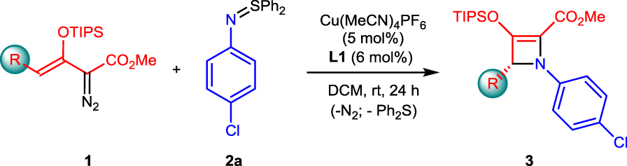 Table 1 Scope of enoldiazoacetates: effect of the R-substituent.