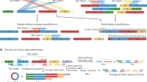 Current computational approaches on circRNA identification are mainly based on the detection of BSJ reads. Most of these methods (e.g., CIRCexplorer2, DCC, find_circ) rely on specific RNA-seq aligners to detect anchor sequences or map fusion reads, and then scan mapping results for circular transcript identification. However, these strategies exhibited significant shortcomings in quantifying circRNA expression from RNA-seq data, as the RNA-seq aligners they used are not designed for mapping reads with a BSJ signal, especially for those spanning multiple junction sites8,25. Other tools either use BWA-MEM to obtain split mapping position of junction reads11,12, or employ a model-based statistical algorithm to quantify circRNA expression levels10, of which the sensitivity and accuracy for circRNA detection and quantification are dependent on the threshold and model selection. Here, we proposed a new and efficient approach (Fig. 2a) to accurately identify and quantify both linear and circular transcripts across BSJ from transcriptomic data. First, RNA-seq reads were aligned to the reference genome using HISAT2, and CIRI212 or other circRNA detection tools were applied to identify putative circRNAs. To accurately quantify the expression level of circRNAs and filter false-positive BSJs, we generated a pseudo circRNA reference sequence by concatenating two full-length sequence of the BSJ region. Then, candidate circular reads were re-aligned against this pseudo reference, and BSJ reads were determined if they could be linearly and completely aligned to the BSJ region. Furthermore, by combining the alignment results against the reference genome and the pseudo-reference sequences, we could determine the junction ratio for each circRNA by calculating the percentage of circular splice junction reads across the BSJ. Finally, canonical RNA-seq data analysis pipeline23,26 was used to obtain transcript-level expression information27.
