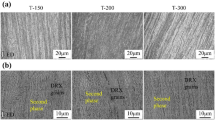 Samples for tensile tests and compressive tests were machined along the extrusion direction according to ASTM-E8-04a and ASTM-E9-89 and carried out in a universal material test machine (Instron 5969, USA) at room temperature. For tensile and compressive tests, the displacement rates were 1 × 10−4 s−1 and 2 × 10−4 s−1, respectively. The yield strength was determined as the stress at which the 0.2% plastic deformation occurred. The maximum stress before 50% compressive strain was defined as ultimate compressive strength. Microhardness test was adopted by a microhardness tester (SHIMADZUHMV-2t) measuring Vickers hardness with 0.1 kN loading force and 15 s dwell time. An average of at least five measurements was taken for each group.