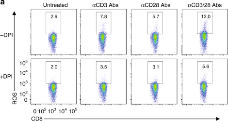 3. The dot plots representing samples treated with αCD3 and αCD28 Abs, +DPI (second and third dot plots, the lower row) have been inadvertently switched. The correct version of Fig. 3a is: