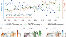 To investigate the response of vegetation to dryness, we focus on the growing season and days when the SM and VPD effects were most likely to control ecosystem fluxes and screen out days when other meteorological drivers were likely to have a larger influence on fluxes. Following previous studies12,23, for each pixel, we restrict our analyses to the days in which: (i) the daily average temperature >15 °C; (ii) sufficient evaporative demand existed to drive water fluxes, constrained as daily average VPD > 0.5 kPa; (iii) high solar radiation, constrained as daily average photosynthetic photon flux density >500 µmol m−2 s−1.