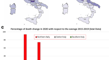 The results of the identification process also show the presence of a statistically significant correlation (p-value equal to 0.071) between the value of the mortality rate, parameter ζi in model (1)–(6), and the saturation of the regional health system represented by the ratio between the number of hospitalized in that region (Hi) and the total number of available hospital beds in intensive care (\(T_i^H\)) (See Supplementary Notes and Supplementary Fig. 14 for further details and function estimation).