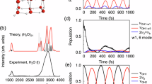 Remarkably, although the stretching mode has been intensely investigated, information on energy transfer pathways from the H–O–H bending mode is scarce. With approximately half the energy of the stretch mode, the bending mode likely provides an efficient pathway for energy delocalization and dissipation. The few experimental and theoretical studies of the bending mode reported to date have revealed that the delocalized character of H–O–H bending mode affects the vibrational dynamics16,22,23,24, but the impact of the delocalization on the dynamics is still under debate. For example, the impact of intermolecular bending–bending vibrational coupling (Fig. 1a)16,22,23,25 as well as vibrational coupling of the bending and librational modes (Fig. 1b, c)12,13,14,23,26 on energy relaxation have been separately investigated, while there is no systematic study for these mechanisms. Furthermore, the impact of the bending mode-librational mode mixing (Fig. 1d) on the dynamics has not been identified, though recent studies imply the importance of the mode mixing beyond the normal mode description15,16. This missing understanding of water’s bending mode vibrational dynamics precludes a unified view of vibrational energy exchange and relaxation of water vibrations.