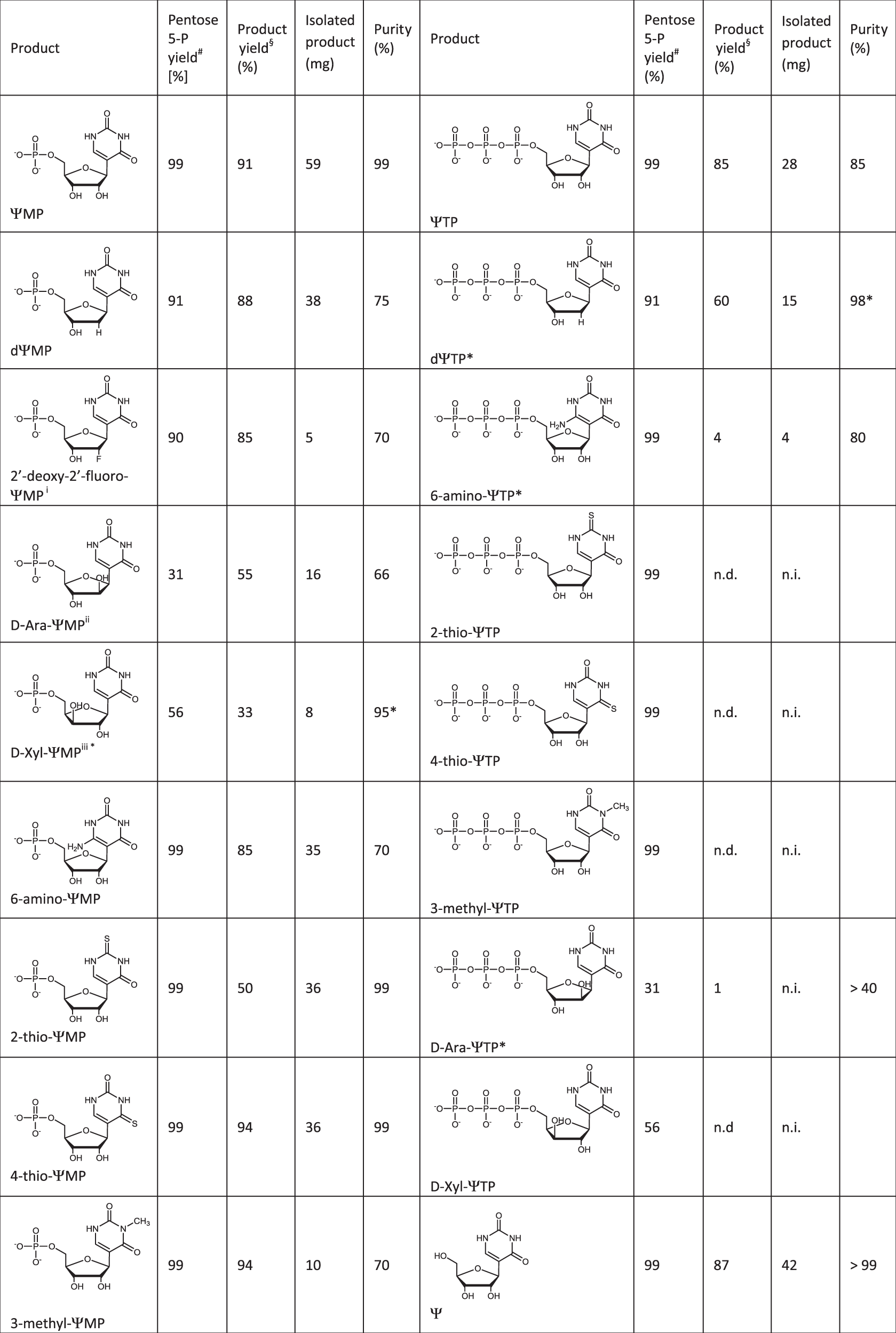 Table 1 Enzymatic syntheses with yields and product purities indicated.