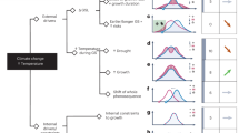 To distinguish between the effects of spatial variation versus interannual variability, spring T and moisture D are included in the model as site means and site anomalies35. Spring minimum T affect phenology and frost risk during flowering and early fruit initiation. Summer mean T (June–August) is included both as a linear and quadratic term. Mean summer T is linked to thermal energy availability during the growing season, with the quadratic term allowing for potential suppression due to extreme heat. Moisture D (cumulative monthly PET-P (potential evapotranspiration[-] minus precipitation) for January–August) is included as a site mean and an annual anomaly. Moisture D is important for carbon assimilation and fruit development during summer in the eastern continent and, additionally, from the preceding winter in the western continent. For species that develop over spring and summer, anomalies incorporate the current and previous year. We did not include longer lags in covariates. For species that disperse seed in spring (Ulmus spp. and some members of Acer), only the previous year was used. Temperature anomalies were included for spring, but not summer, simply to reduce the number of times that temperature variables enter the model, and these two variables tended to be correlated at many sites.