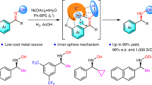 As a privileged structural motif, benzylamines and related amide derivatives are found in many natural products, pharmaceuticals, agrochemicals, and other chemicals (Fig. 1a), and efficient strategies for their catalytic, enantioselective synthesis have long been sought1,2,3,4,5. Metal hydride6,7,8,9 catalyzed reductive hydrofunctionalization from readily available alkene starting materials is a particularly appealing approach to the synthesis of benzylamines. Previously, starting from styrene and an electrophilic amination reagent, Buchwald10 and Miura and Hirano11 have independently developed an enantioselective reductive CuH-catalyzed hydroamination method (Fig. 1b, left). We recognized that if asymmetric hydroarylation of enamines could be achieved, enantioenriched benzylamines would become accessible (Fig. 1b, right).