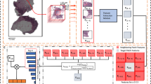 The deep-learning framework we developed is shown in Fig. 2. This framework consists of three phases—segmentation, classification, T/MLN calculation (see “Methods” for details). The LN segmentation network used the U-Net architecture to extract the LN regions from the WSIs 1× magnification thumbnails. The network was then fully trained through 700 marked WSIs including 1321 LNs. We tested the performance of the segmentation network on the validation set, and found a mean Jaccard index of 95.8%, and a mean Dice score of 98.6%. An example of the algorithm output is shown in Fig. 2b, where the adipose tissue and muscle fibers outside the LNs were excluded. After the AI-assisted diagnosis outputs the heatmaps, the pathologist reviewed the high-confidence area of the heatmap and corrects the wrong area on it.