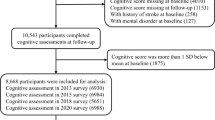 Health-related variables included measures of cardiometabolic risk factors and mental health. Cardiometabolic factors were hypertension (systolic ≥140 or diastolic ≥90 mmHg or use of antihypertensive medication), diabetes mellitus (determined by fasting glucose ≥7.0 mmol/L, reported doctor-diagnosed diabetes, use of diabetes medication, or hospital record), body mass index (BMI, categorized as <20, 20–24.9, 25–29.9, and ≥30 kg/m²) based on height and weight assessment at the clinical examination using standard clinical protocols, and cardiovascular disease (including coronary heart disease and stroke identified using linkage to national hospital records). Mental health factors included current depressive symptomatology defined by the four-item depression subscale of the General Health Questionnaire48, and self-reported use of CNS medication (anti-depressant, antipsychotic, hypnotic, anxiolytic, or Parkinson medications).