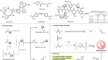 MFM-300(Cr) was chosen as a photocatalyst because of its high stability and optical properties among the iso-structural family of MFM-300(MIII) (M = Al, Cr, V, Fe, Ga, In)36,37,38,39 materials. It is the only one that retains high crystallinity and stability after irradiation for 2 days under the photochemical conditions used in this work (Supplementary Fig. 6). Additionally, solid-state UV-Vis diffuse reflectance spectroscopy data confirm that MFM-300(Cr) has the widest window of light absorption up to 800 nm (Fig. 2a). The UV-Vis diffuse reflectance spectra of CrCl3·6H2O and H4L have also been measured (Supplementary Fig. 7). Three absorption bands centred at 289, 453 and 624 nm are observed for CrCl3·6H2O, which can be assigned to the d–d transitions of Cr3+, i.e., 4A2g \(\to\) 4T2g, 4A2g \(\to\) 4T1g (F) and 4A2g \(\to\) 4T2g (P)40, respectively. The absorption at 310 nm is assigned to π → π* transition of the phenyl rings of the ligand. The overall absorption within the ultraviolet region of the UV-Vis spectrum of MFM-300(Cr) is therefore attributed to the combination of π → π* transition of the phenyl rings of the ligand, LMCT transitions41 and a d–d transition of the Cr(III) centre. The two strong absorption bands in the visible light region centred at 420 and 580 nm are assigned to two additional d–d transitions of the Cr(III) centre. Compared with the precursors, the shifts of these bands (Δ = 33–44 nm) observed in the MOF is likely due to the hybridisation between the frontier orbitals of Cr3+ and the ligands. Photocatalysts with small band gaps can be readily excited by visible light (λ < 713 nm) to produce electron/hole pairs, thus simulating conventional semiconductor materials42. Importantly, MFM-300(Cr) exhibits an optical band gap (Eg) of 1.75 eV (Fig. 2a and Supplementary Fig. 8), lower than that of the Al, Fe, Ga, In-analogues of MFM-300 (3.81, 2.67, 3.30 and 3.04 eV, respectively). Although adopting a similar band gap of 1.72 eV, MFM-300(V) shows poor photochemical stability and PXRD data confirmed structural degradation of the recycled sample after the photoreaction (Supplementary Fig. 6e), which is attributed to its intrinsic redox-activity43. The band gap for MFM-300(Cr) is higher than that of Fe-porphyrin-based MOFs (1.30 eV)44 but compares favourably with most MOFs and semiconductors45 such as chemically modified n-TiO2 (2.32 eV)46, Ag3PO4 (2.43 eV)47, NH2-MIL-125(Ti) (2.60 eV)48, and NH2-UiO-66(Zr) (2.75 eV)49. Overall, MFM-300(Cr) demonstrates the promising potential to promote photoreactions and we thus targeted the construction of C–C bonds by reductive coupling of aldehydes and ketones to produce 1,2-diols.