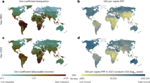 Recently, few papers11,12,13,14 have amended DICE to consider the latest climate and economics science, including empirically-derived climate impact functions. The re-calibrated models have shown that the Paris agreement targets might be economically optimal under standard benefit-cost analysis. However, these findings rely on a single-region model, with no consideration of regional heterogeneity and inequality in the costs and benefits of climate action. This is a major limitation: one key finding of the empirical evidence about climate economic impacts is their high heterogeneity across countries15,16,17,18. Furthermore, emission reduction opportunities as estimated by detailed-process IAMs and reviewed by the IPCC vary significantly across countries19. Finally, aggregated benefit-cost analyses hide key sources of inequality, and these are consequently not accounted for in their welfare frameworks. The evidence from the benefit-cost assessments of heightened climate change impact doesn’t yet account for regional heterogeneity. This prevents a comparison between cooperative and self-interested scenarios, accounting for preferences over equality, and fully capturing economic convergence dynamics and technological progress. Most importantly, it obscures inequalities across countries and leaves them out entirely from the optimization.